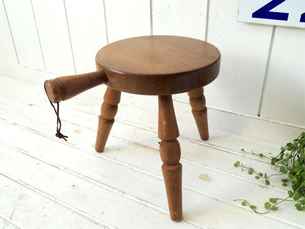 酪農家の方が牛の搾乳で使われていたと言われる、持ち手付きの低い腰掛けイスになります。