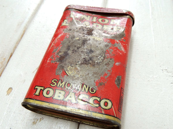 アメリカ南中部・オクラホマ州で見つけました・・『UNION LEADER』のティン製・アンティーク・タバコ缶です。