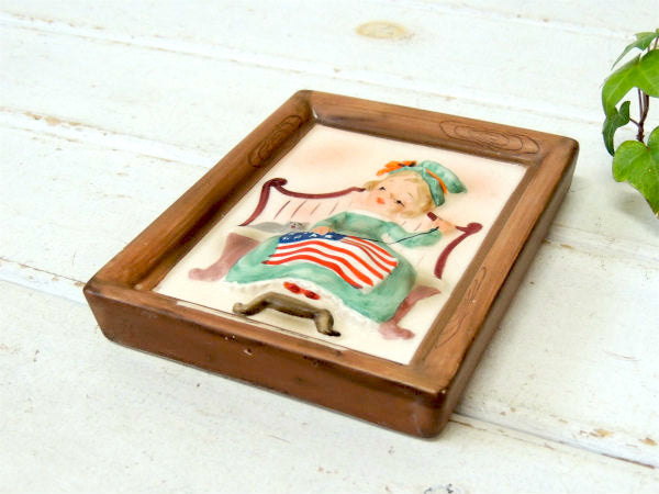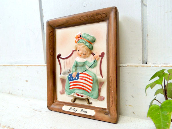 アメリカ南部・テキサス州郊外で見つけました・・『Napco Ceramic』の【Betsy Ross(ベッツィー・ロス)】セラミック製・アンティーク・壁飾りです。