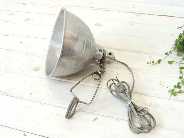アメリカ南部・テキサス州で見つけました・・『SNAPIT』のアルミ製・ヴィンテージ・クリップライト(ポータブルランプ)です。 経年で多少のキズやシェードの歪みなどがあり、時を経て少し変色し、使い込まれた味わいがございます。 クリップ式でフレキシブルに角度を変えることができます。 ランプシェードはアルミ製、クリップ部分は金属製です。 シェード根本に【SNAPIT 660W. 250V. / MADE IN U.S.A.】と刻印がございます。