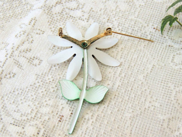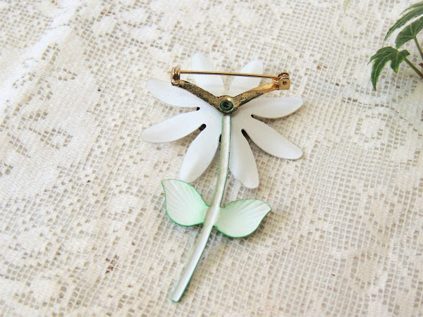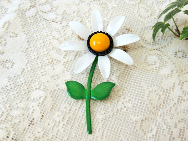 【白×黄×緑】レトロポップ・フラワーモチーフ・ヴィンテージ・ブローチ/アクセサリー/1960~