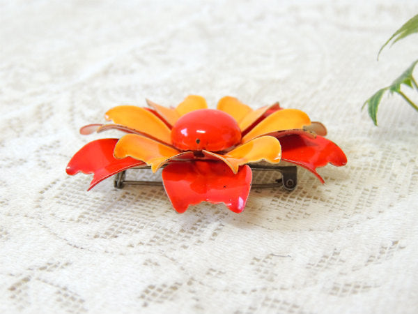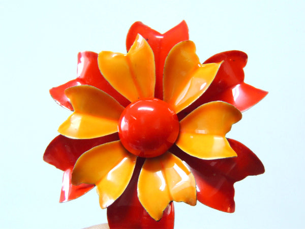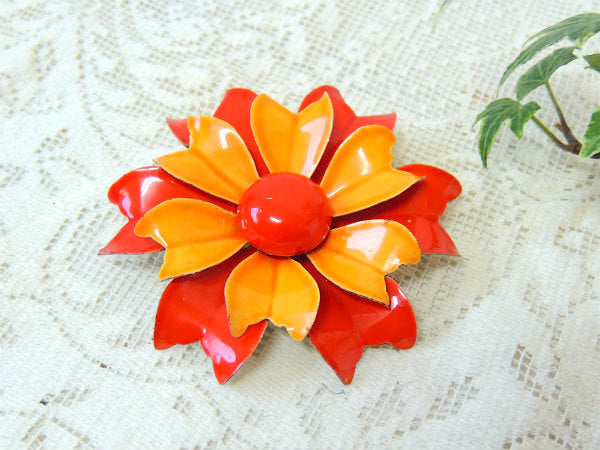 赤×オレンジ フラワーモチーフ 立体デザイン ヴィンテージ ブローチ アクセサリー ジュエリー USA