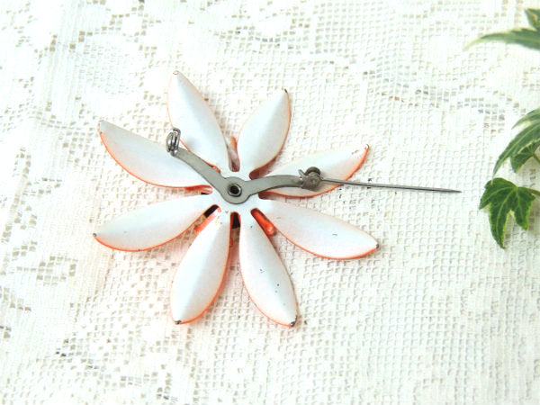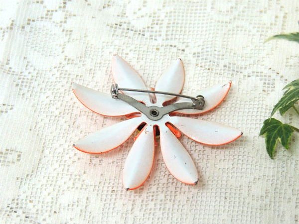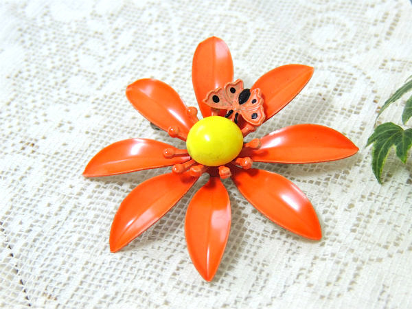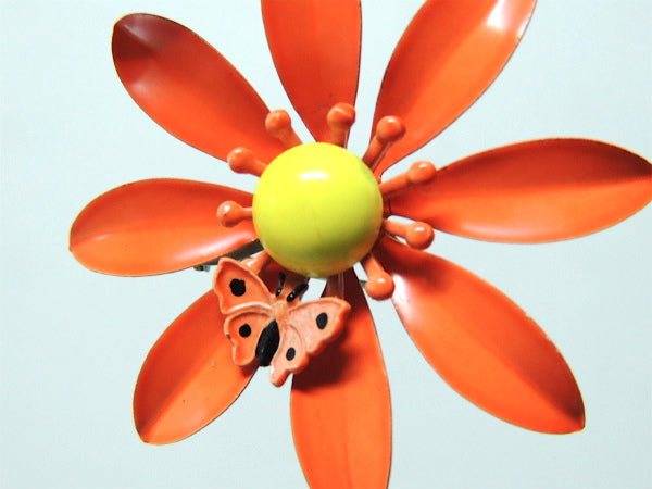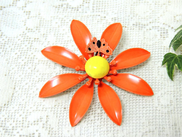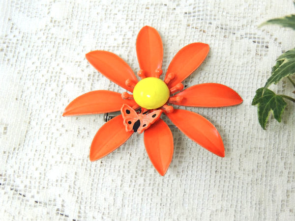 レトロポップ 蝶×フラワ オレンジ ヴィンテージ ブローチ アクセサリー スカーフ留め ジュエリー USA