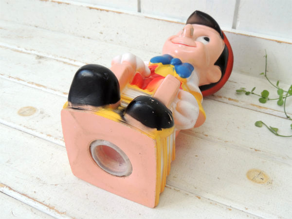 アメリカ西海岸・サンフランシスコで見つけました・・1940年に公開されたディズニーの人気アニメ映画『ピノキオ』の【PLAY PAL PLASTICS INC.製】ビッサイズ・ビンテージ・コインバンク(貯金箱)です。
