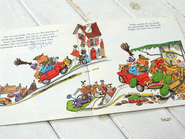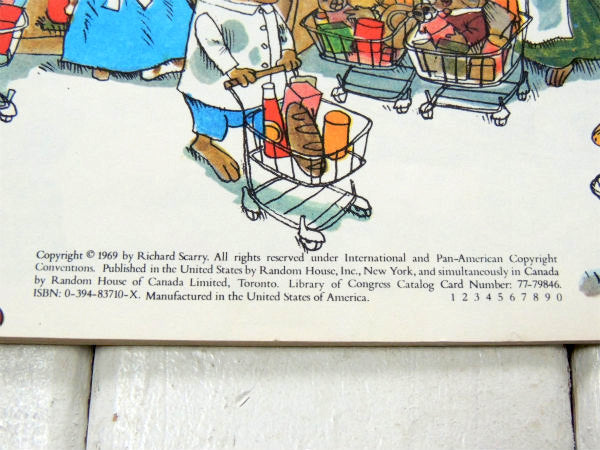 アメリカ西海岸・サンフランシスコで見つけました・・アメリカで愛され続けている『リチャード・スキャリー(Richard Scarry)』の【Supermarket Mystery】1969’sヴィンテージ・絵本です。
