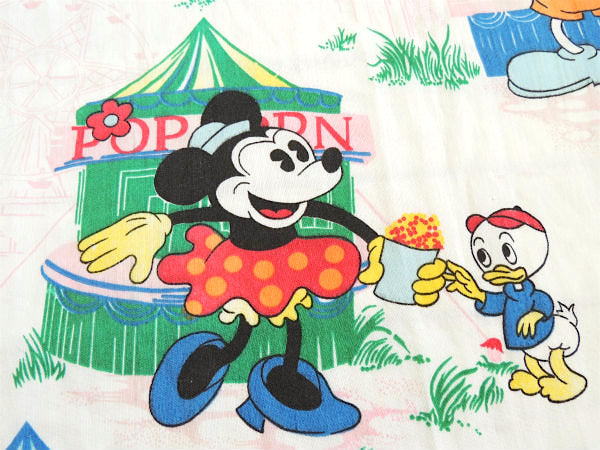 ミッキー&フレンズのレトロ可愛い楽しいカーニバル柄プリントです。