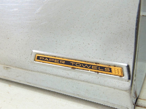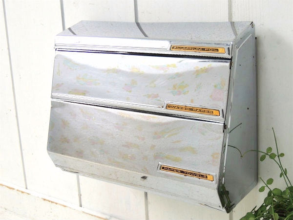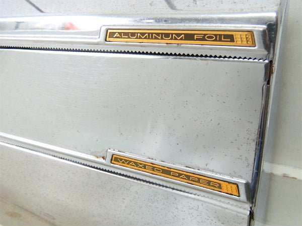 ミラーのような輝きあるクロム製の右端に【AKUMINUM FOIL】【WAXED PAPER】【PAPER TOWELS】のゴールドプレートが付いており、ミッドセンチュリー時代の洗練されたスタイリッシュなデザインです。