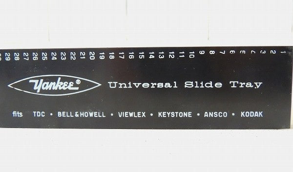 サイドに1~30の目盛りと、【Yankee Universal Slide Tray fits TDC・BELL&HOWELL・VIEWLEX・KEYSTONE・ANSCO・KODAK】と文字が入っております。