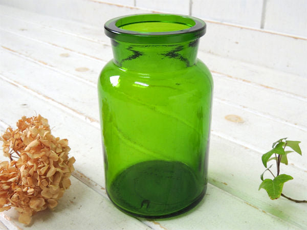 【ベルギー製・緑色】ヴィンテージ・薬瓶・メディカルボトル・ガラス瓶・花瓶・フラワーベース