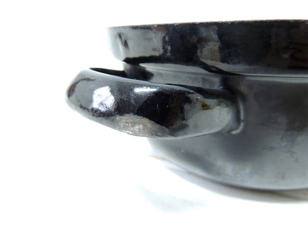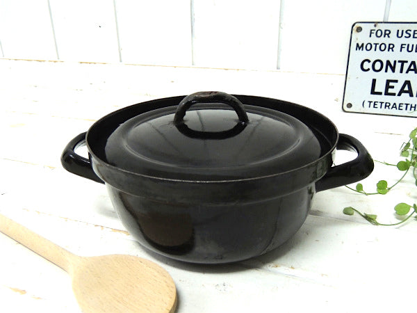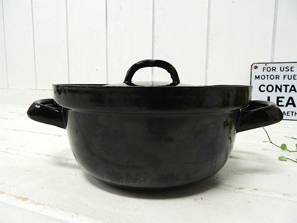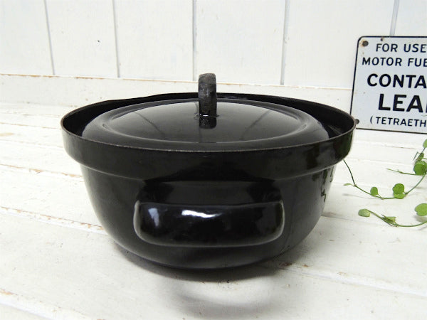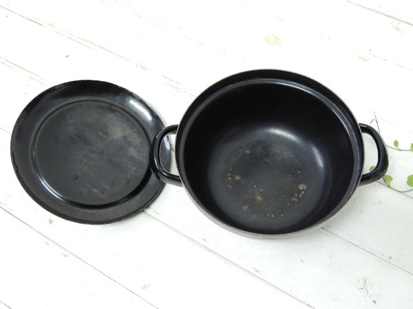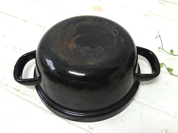 【黒色・ホーロー製】アンティーク・両手鍋・鍋/アウトドア/キッチン雑貨/キャンプ