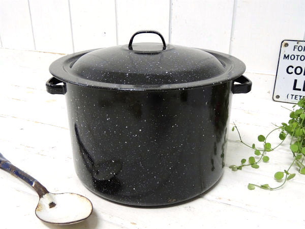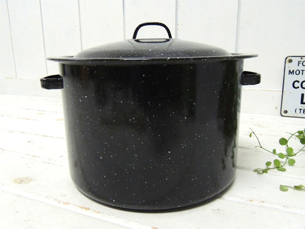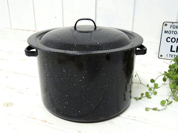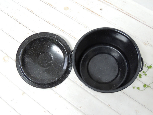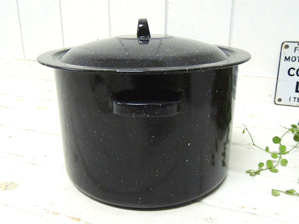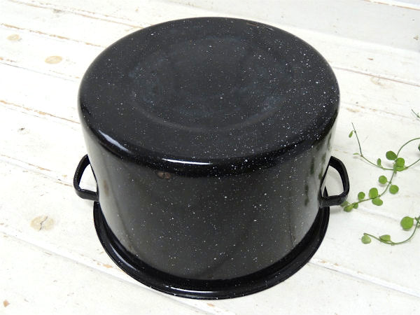 【黒色・ホーロー製】ヴィンテージ・両手鍋・深鍋・寸胴・クッキングポット・キャンプ・アウトドア