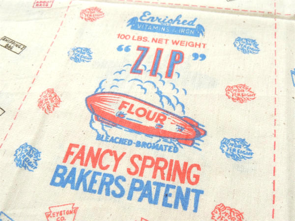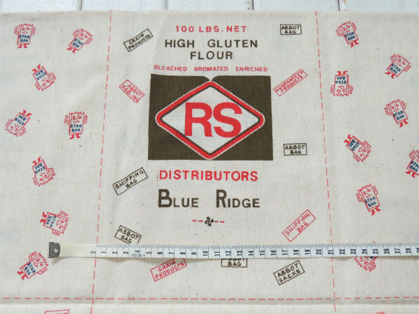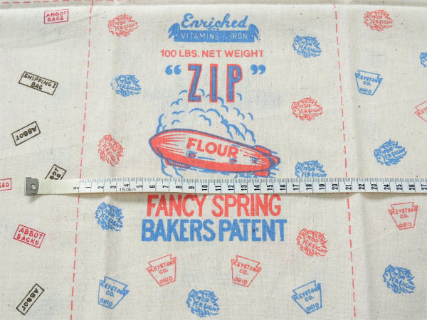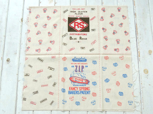 【High Gluten Flour, RS Distributors, Blue Ridge】が1パネル、【“Zip” Flour Fancy Spring Bakers Patent】が1パネル、袋の背面になるパネルが4枚、合計6パネルの未カット点線入りファブリックです。