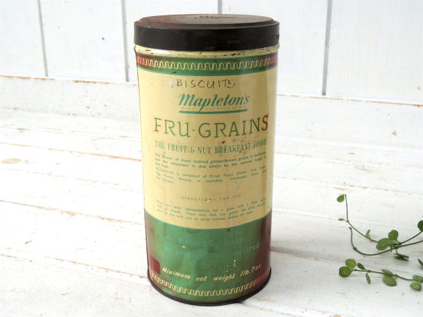 英国・イギリスのシリアル朝食『FRU-GRAINS』のヴィンテージ・ティン缶(保存容器)です。