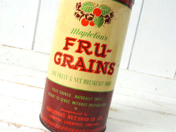 【FRU GRAINS・イギリス】フルーツ柄・シリアル・50's~ヴィンテージ・ティン缶/ブリキ缶