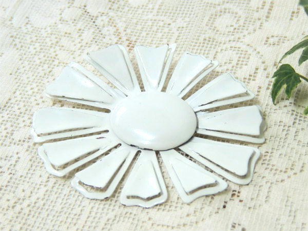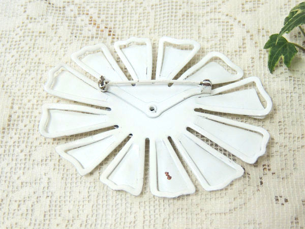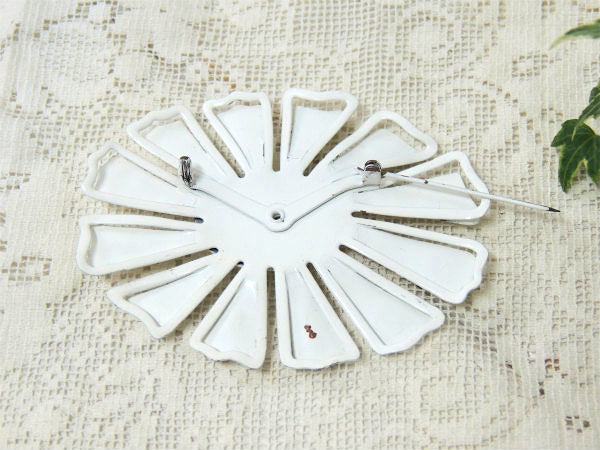 レトロ 型抜きデザイン ホワイト フラワーモチーフ 60's ヴィンテージ ブローチ アクセサリー ジュエリー USA