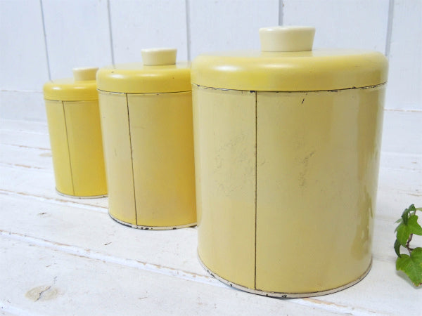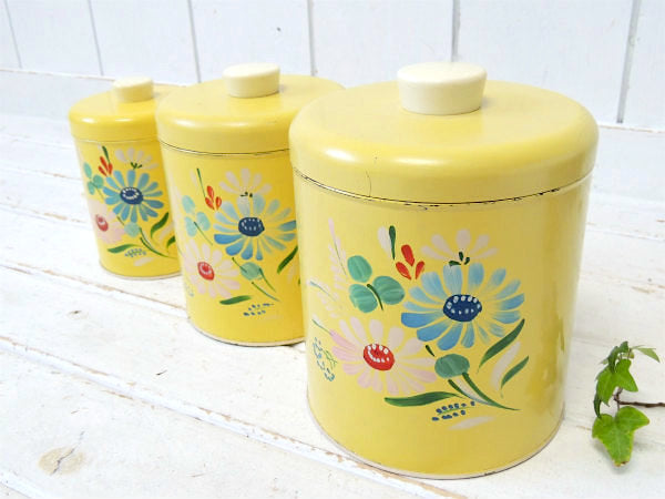 USA ランズバーグ イエロー・花柄・アンティーク・キャニスター・3個セット 保存容器 カントリー
