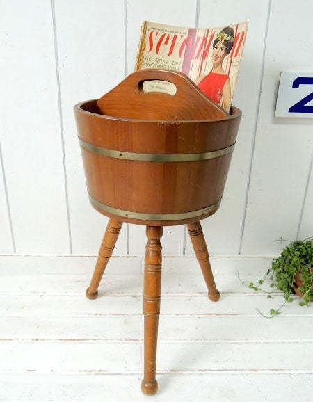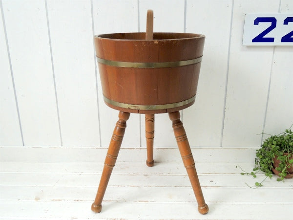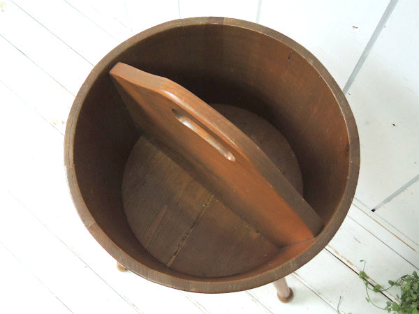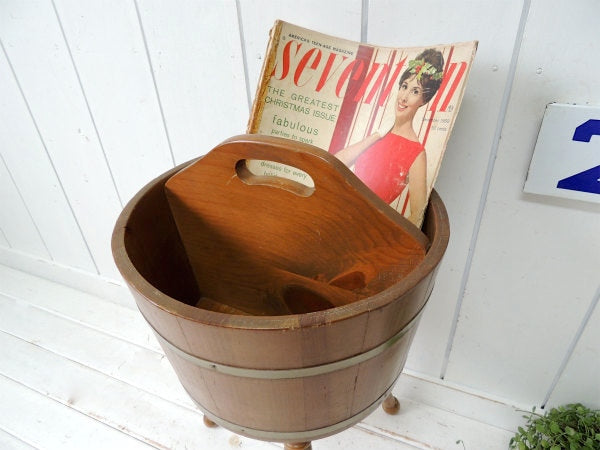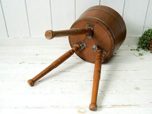 【アーリーアメリカン】樽型・木製・脚付き・アンティーク・ソーイングボックス/マガジンスタンド USA
