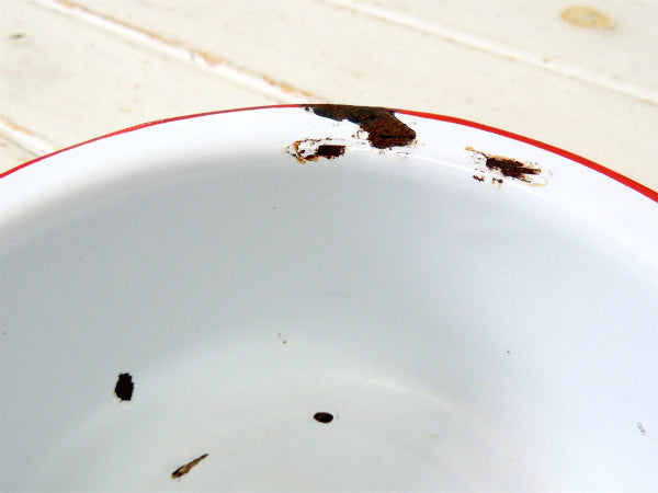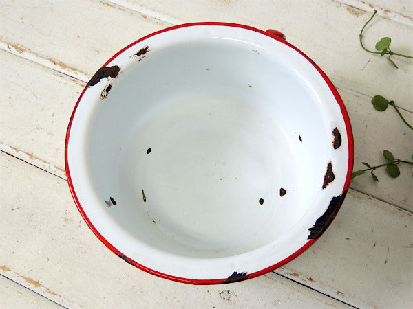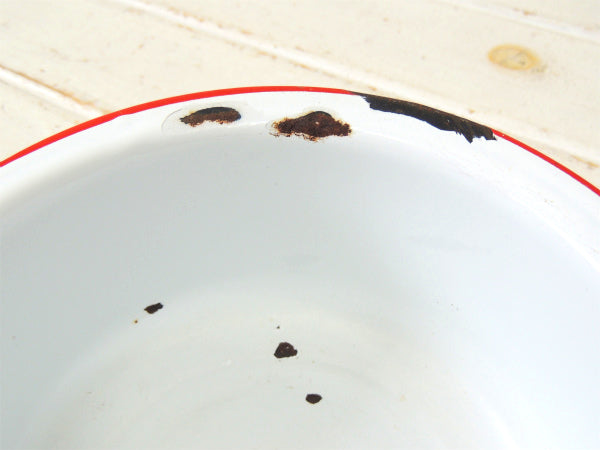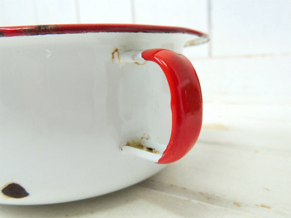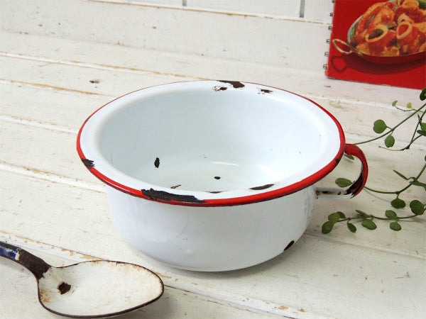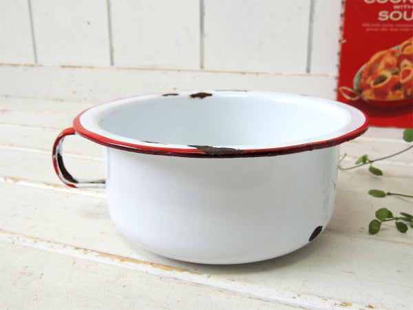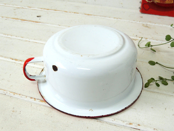 【ホワイト×レッド】ホーロー製・ハンドル付き・ヴィンテージ・ボウル/ワンハンドルボウル USA