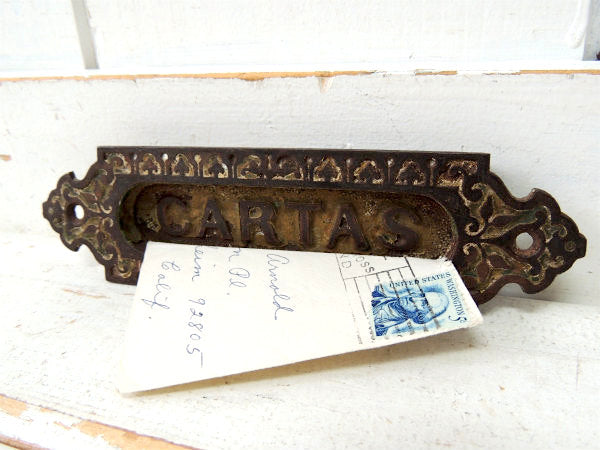 アメリカ西海岸 カリフォルニア サンフランシスコで見つけました・・お洒落な模様のアイアン製・アンティーク・レタースロット(郵便受け・建材)です。