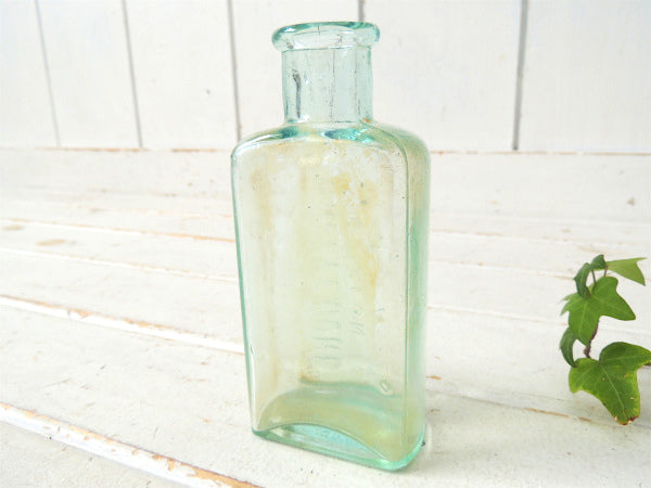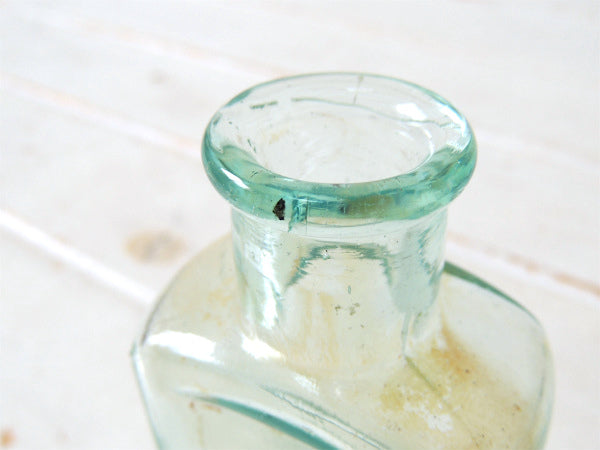 シューポリッシュ(靴磨き)の液体が入っていた、気泡たっぷりのグリーンがかった古いガラス瓶です。