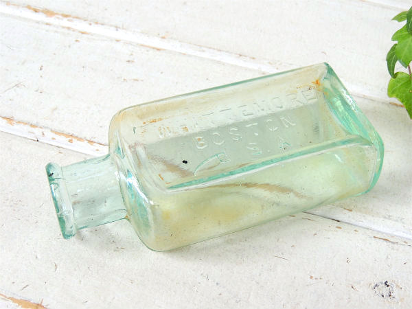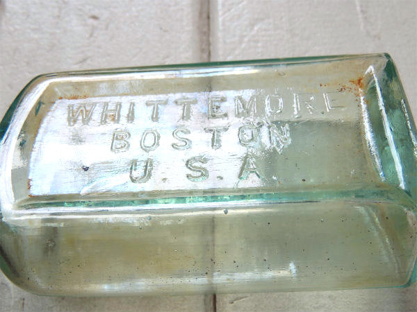 アメリカ南中部・オクラホマ州で見つけましたました・・『WHITTEMORE BOSTON』のアンティーク・ガラスボトルです。