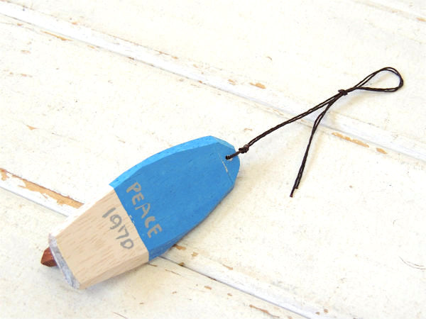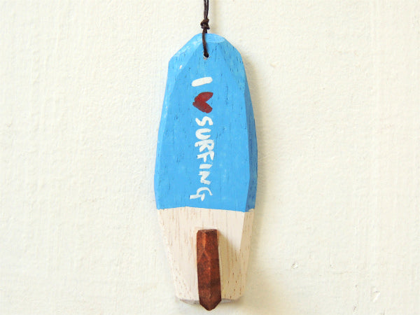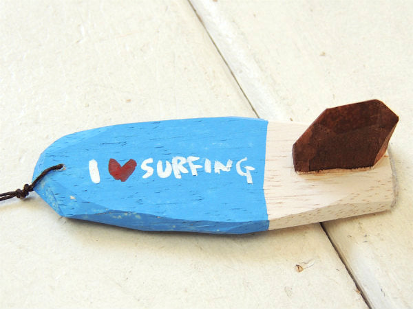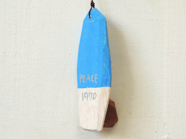 【PEACE 1970】松田大児・I♡SURFING・青×白・木製・ミニサーフボード・オブジェ⑯