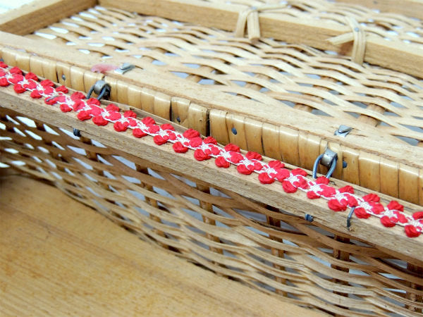 内側の縁に赤色のチロリアンテープのデコレーションが施され、レトロ可愛い雰囲気になっております。