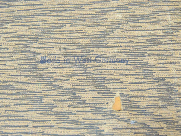 西ドイツ製の木製・ヴィンテージ・ソーイングバスケットです。