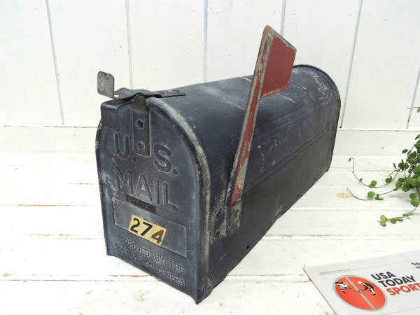 【US MAIL】アメリカンスタイル・シャビー・黒色・ビンテージ・メールボックス・ポスト・郵便受け