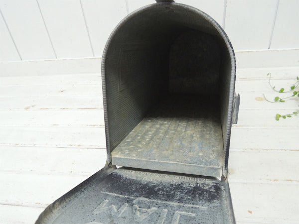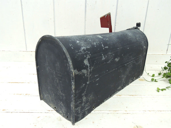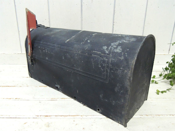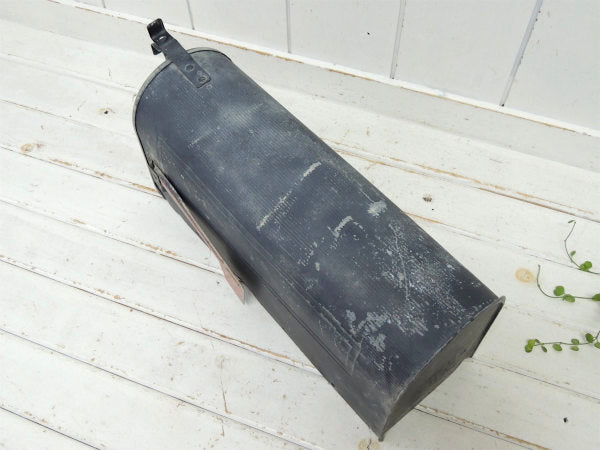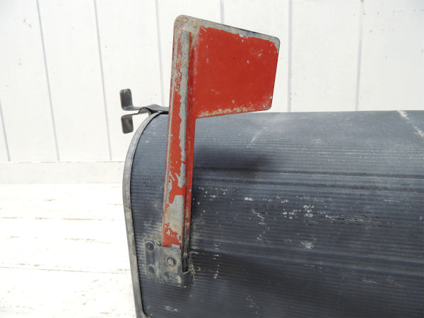 アメリカではよく見かけるポピュラーな郵便受けで、サイドの赤い旗(ティン製)を立てておくと、郵便屋さんが配達時に内側の郵便物を持って行ってくれるという、優れたシステムです。