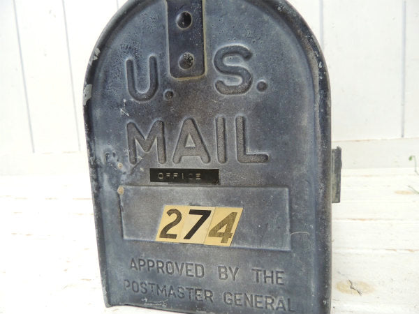 取っ手下に【U.S MAIL OFFICE 274 /APPROVED BY THE POSTMASTER GENERAL】背面に【MFD.BY JACKES-EVANS MFG.CO. ST.LOUIS.MO /8-79】とエンボス文字が入っております。