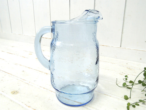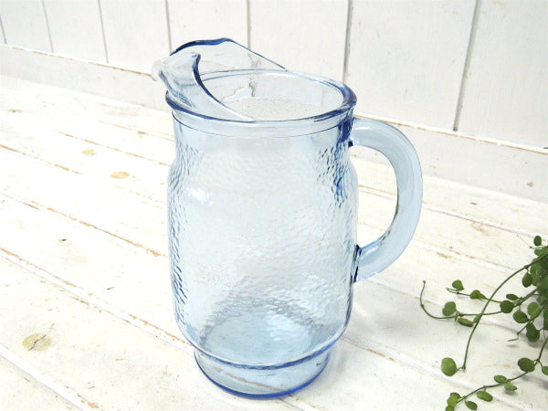 【USA・ハンマード】ブルーガラス・ヴィンテージ・ピッチャー・ガラスジャグ・水差し・フラワーベース
