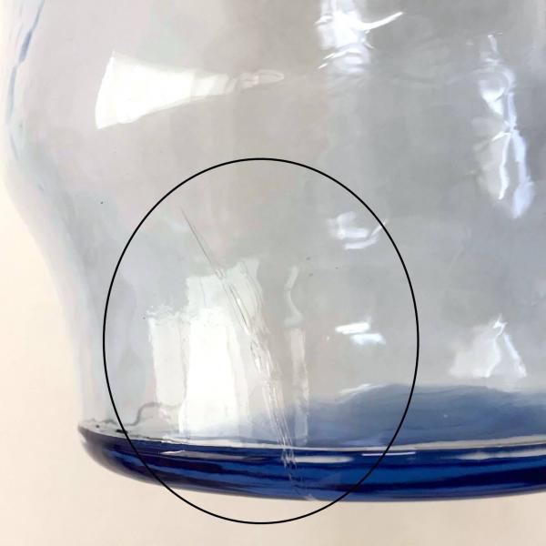 凹凸のある涼しげなブルー色のハンマードガラス製で、ずっしりとした重みがございます。