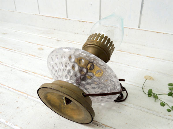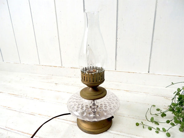 オイルランプ型・ガラス×真鍮製・アンティーク・テーブルランプ・デスクランプ・照明・ハリケーンランプ
