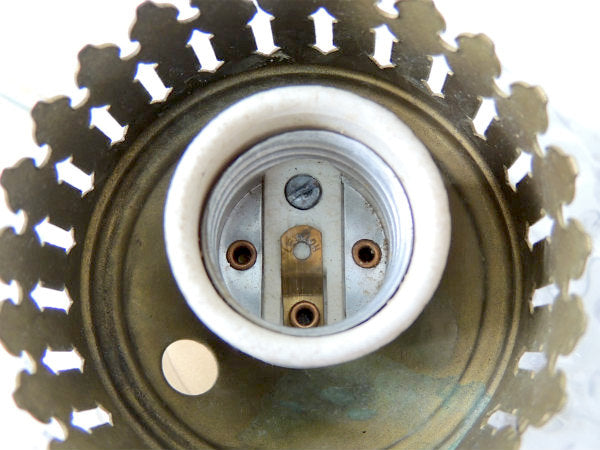 ゴールド部分は真鍮製、下部の円盤ガラスの表面はドット柄の模様が施され、クラシックでエレガントな気品溢れるデザインです。