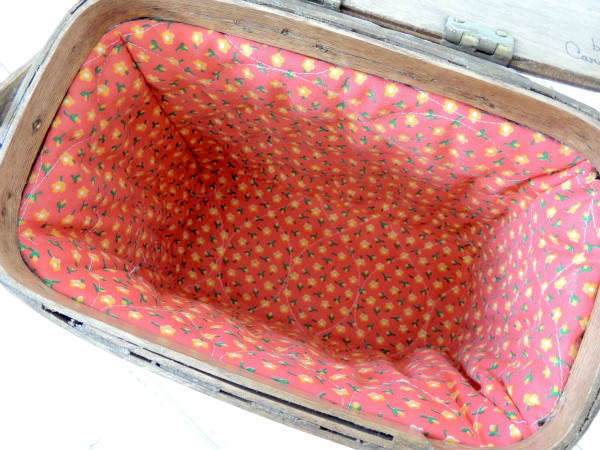 内張りはレトロ可愛い小花柄のキルティング地です。
