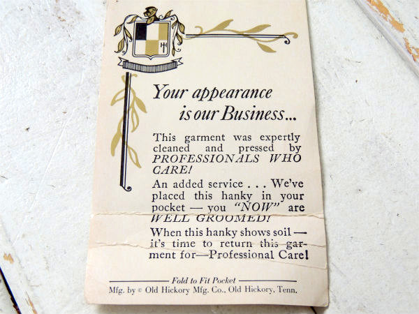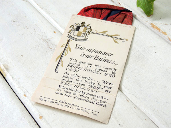 クリーニング店や衣料品店が装飾用スーツのポケットアクセサリーとして使用した宣伝品です。