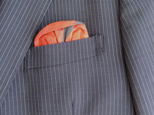 結婚式やパーティーなどフォーマルシーンの胸元のお洒落・・カジュアルなジャケットにポケットチーフを挿して華やかさを演出してみてください!!