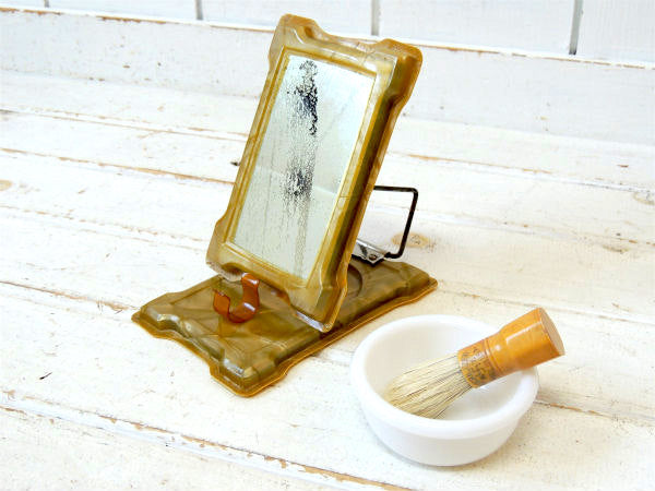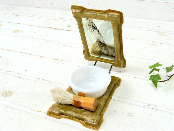 卍・sterilized BARBER ミラー+髭 ブラシ+ボウル・アンティーク・シェービングセット