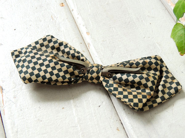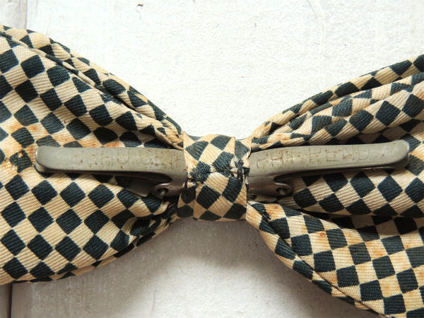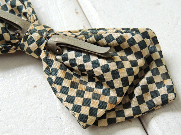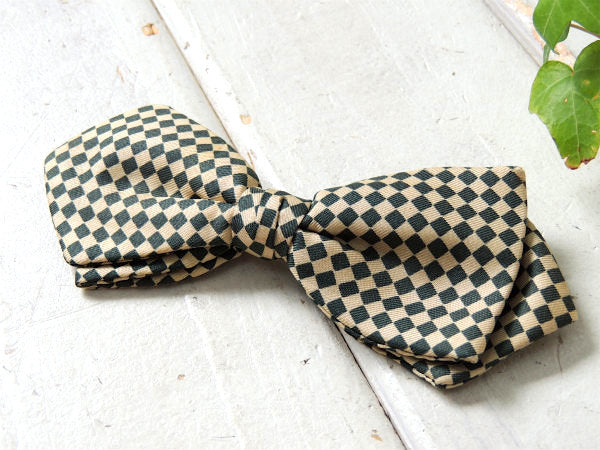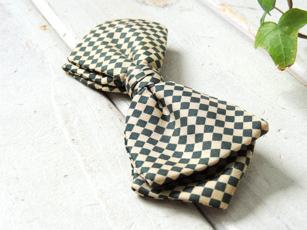 【BEAUCLIP】グリーン×クリーム色・チェッカー柄・ビンテージ・蝶ネクタイ・ボウタイ・古着