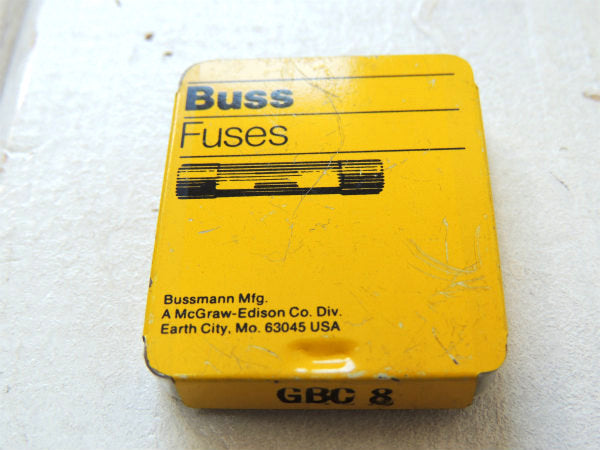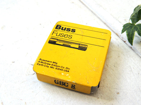 【Buss Fuses・イエロー】 スモールサイズ・ヴィンテージ・ヒューズ缶・パーツ入り・USA