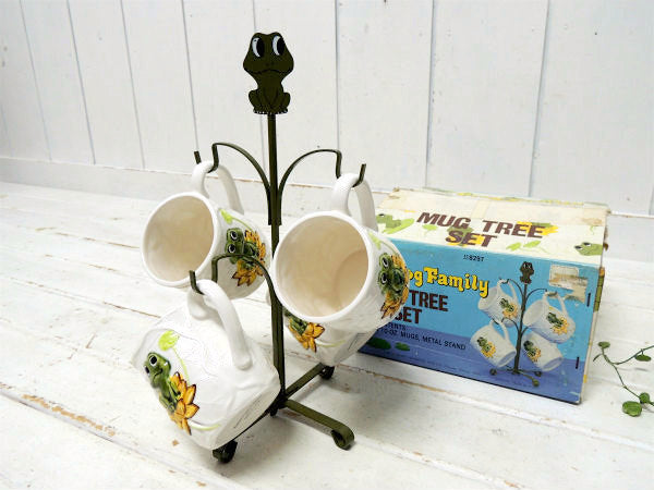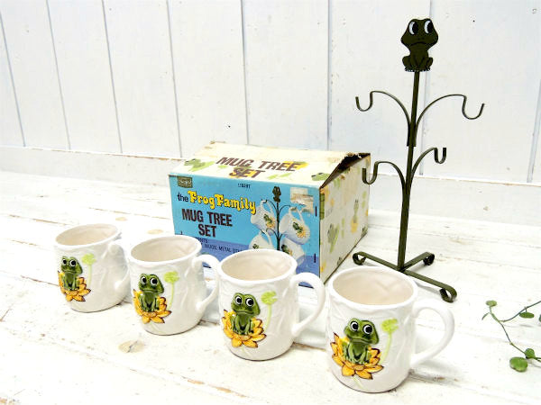 アメリカ西海岸・サンフランシスコで見つけました・・アメリカの老舗・大型デパート『SEARS ROEBUCK(シアーズ・ローバック)社』のデッドストック箱付き・陶器製・カエル柄・ヴィンテージ・マグカップ4個&マグツリーのセットです。