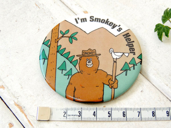 スモーキーベア 熊 森林火災防止 キャラクター ヴィンテージ 缶バッジ ファッション アクセサリー USA