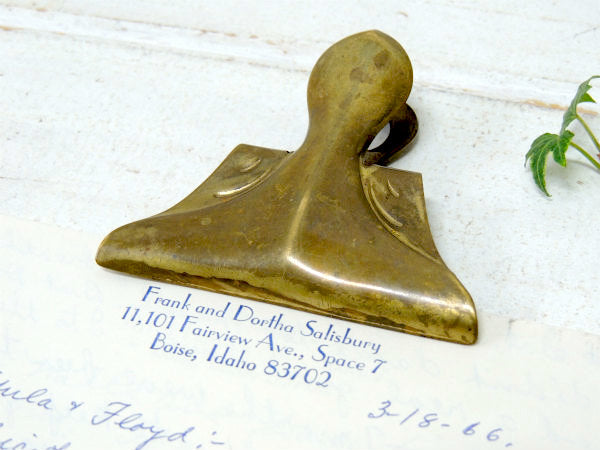 アメリカ西海岸・サンフランシスコで見つけました・・年代を経たノスタルジックな雰囲気たっぷりの真鍮製・アンティーク・OLDクリップです。