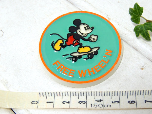 【ミッキー・スケートボード】1970's・ディズニー・キャラクター・ヴィンテージ・バッジ・USA