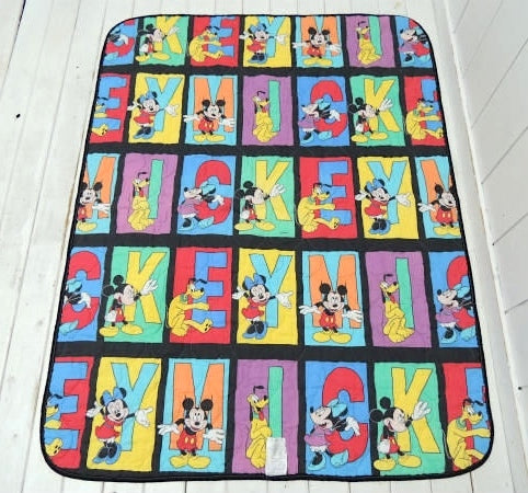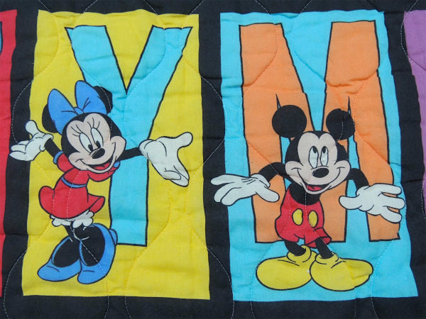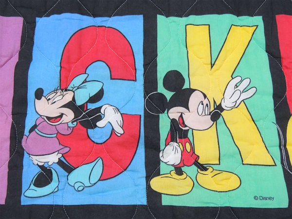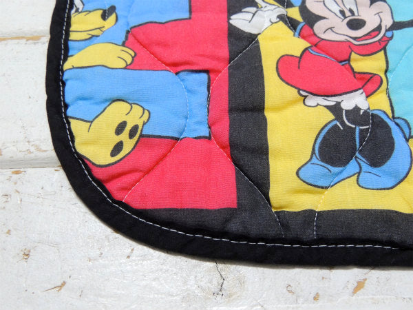 【ミッキー&ミニー&プルート】パネル柄・キルティング製・ヴィンテージ・ベビーマット/ブランケット