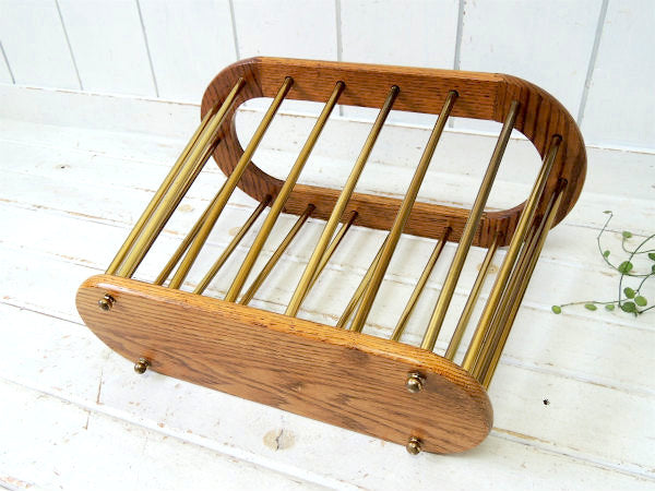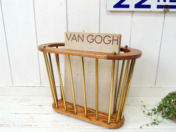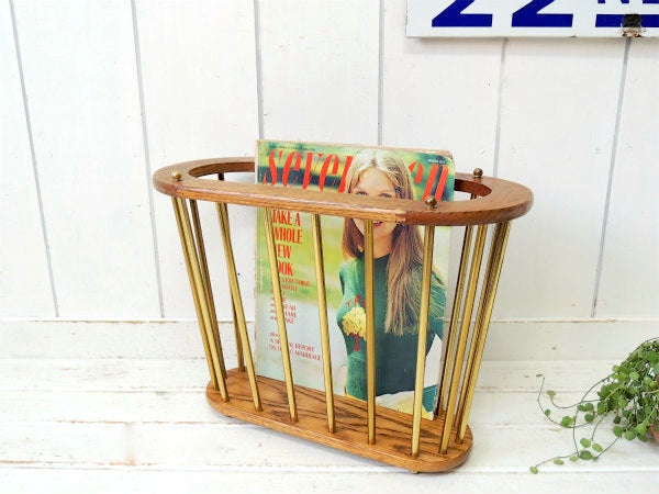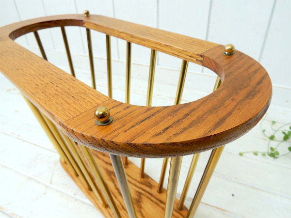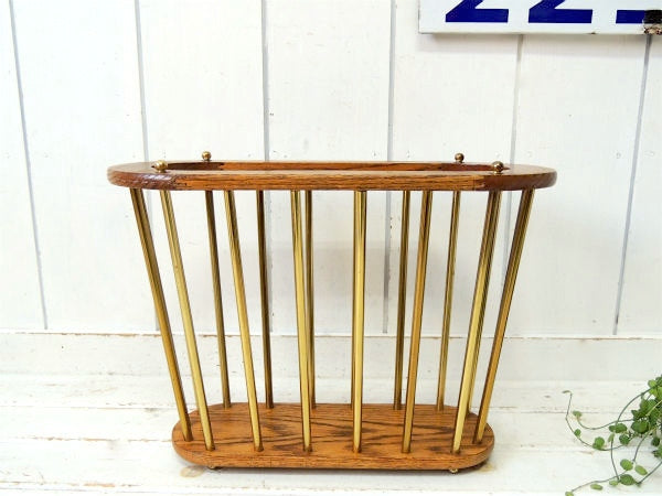 ミッドセンチュリー ウッド×ゴールド×メタル・ヴィンテージ・マガジンラック・マガジンスタンド