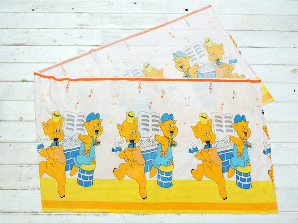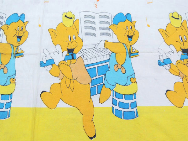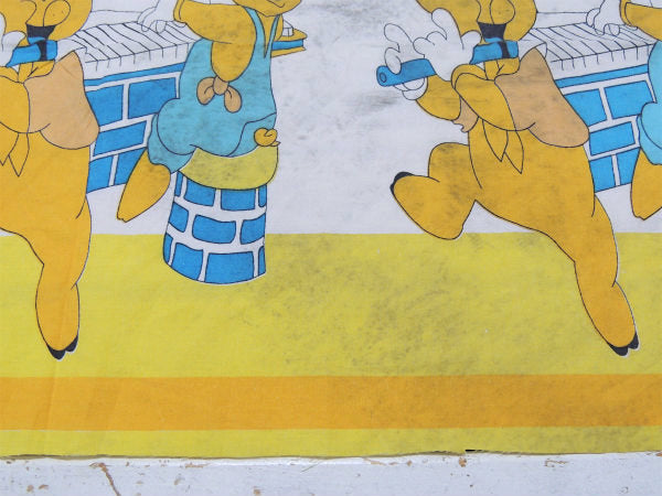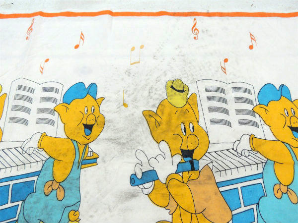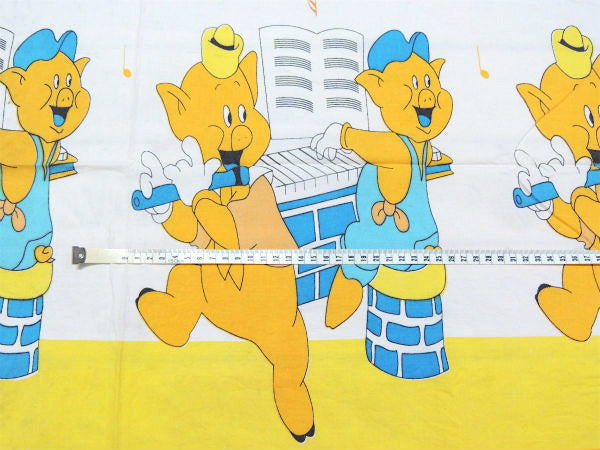 【3匹のこぶた】ウォルト・ディズニー・ブーフーウー・♫柄・ヴィンテージ・ファブリック・生地 USA
