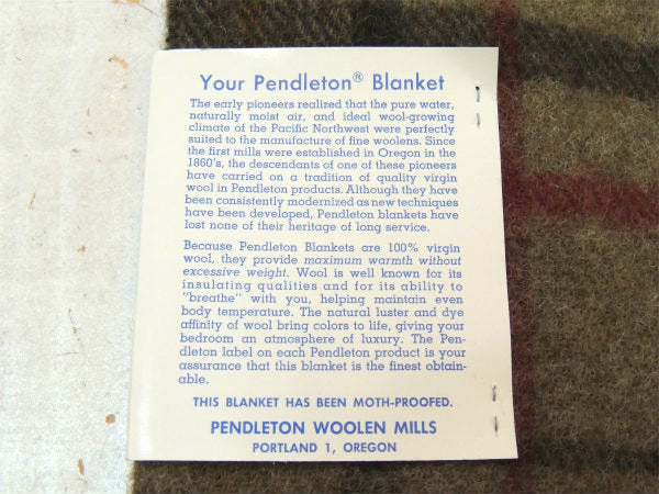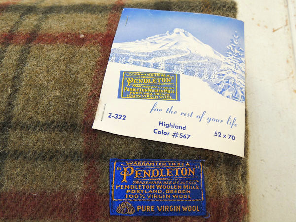 紙ラベル表に【for the rest of your life / Z-322 / Highland 52×70 /color #567】、裏に【PENDLETON WOOLEN MILLS /PORTLAND 1, OREGON】とございます。