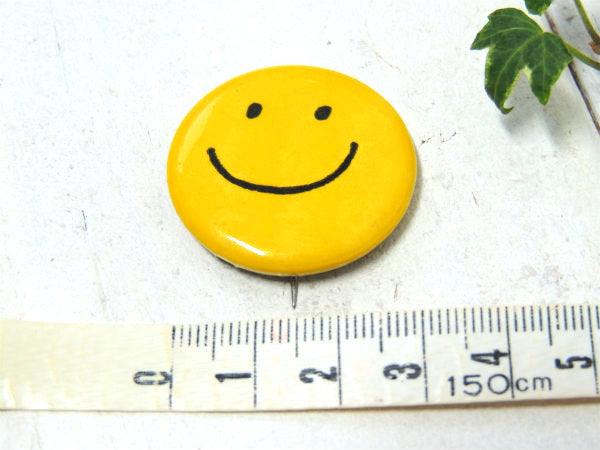 【スマイル・smile・笑顔】ヴィンテージ・缶バッジ・USA・イエロー×ブラック・アクセサリー